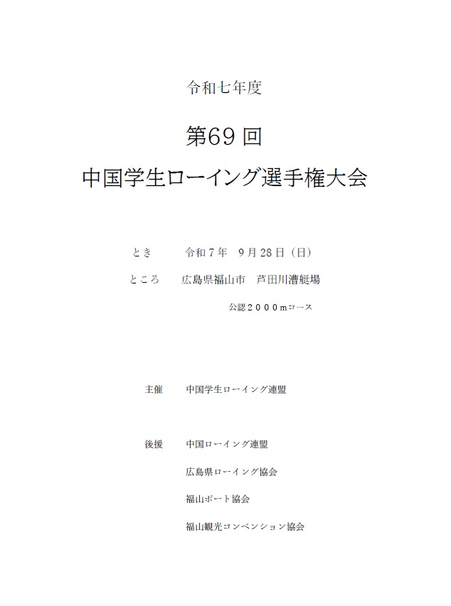 2025年9月28日(日)に、広島県福山市芦田川漕艇場で「第69回中国学生ローイング選手権大会」が開催されます。